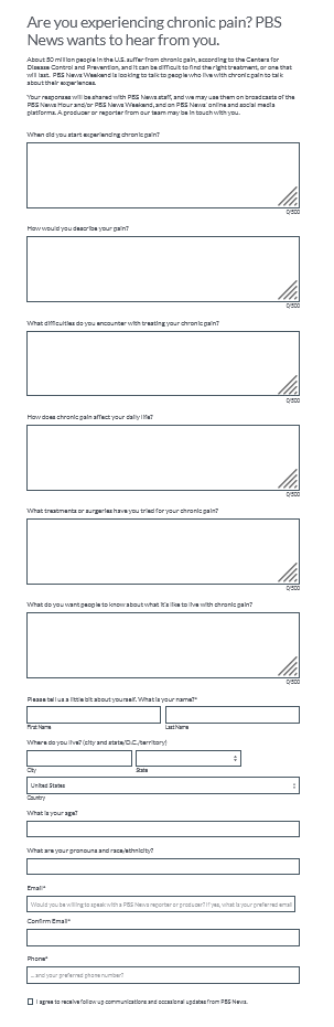 • Are you experiencing chronic pain? PBS News wants to hear from you